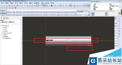 5、這個界面就是草圖繪制界面,在這個界面上要繪制的是中心線和螺紋的軌跡線,軌跡線長50mm。中心線的位置必須在螺桿中間,繪制完成就點擊打勾的圖標,然后會進入下一個界面