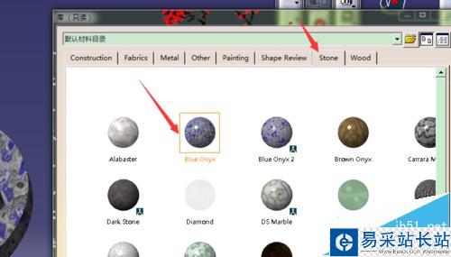 6、為其添加一個材質(zhì),按照圖示箭頭選擇材質(zhì),也可自行選擇。得到帶材質(zhì)的效果的實體。