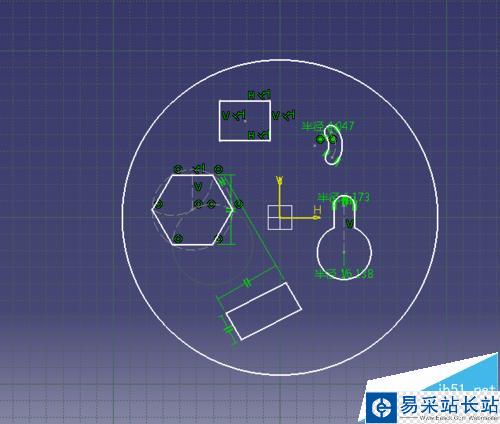 4、在草圖上繪制幾個圓形和多邊形,確保圖形不要相交;退出工作臺;
