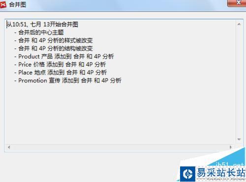 4、選擇好后點擊合并。將會出現合并提示框,講述導圖合并的具體內容以及位置情況。