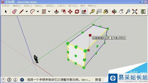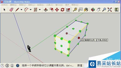 4、你此時可以把鼠標(biāo)懸停在各個面上最中間的點(diǎn)上看下效果,會有提示。你可以選擇在紅綠藍(lán)軸的其中一個軸的方向進(jìn)行縮放。