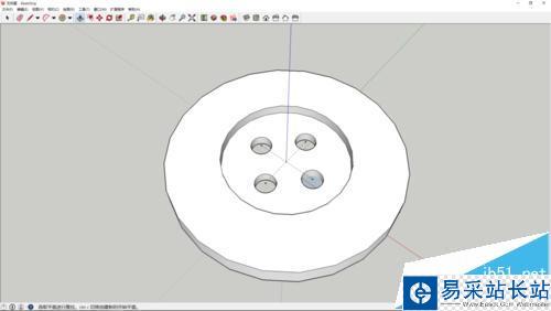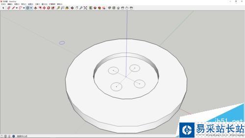 6、繪制四個圓,用推拉工具推出通孔。刪除參考線,完成。