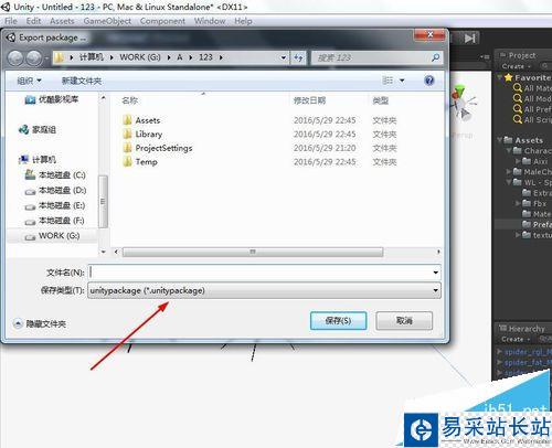 4、點擊存放資源的位置,默認文件格式為unitypackage。點擊確定即可完成。
