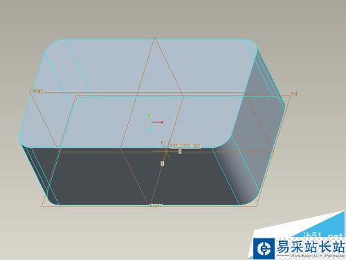 6、最后勾選草繪編輯器里面的確認符號,倒角完成。對草繪圖元進行拉伸操作,得到實體圖形如圖。