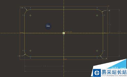 5、重復第四步,對其他三個角進行倒角處理和尺寸標注。