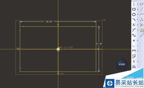 1、如圖先進入草繪界面,繪制兩條中心線。