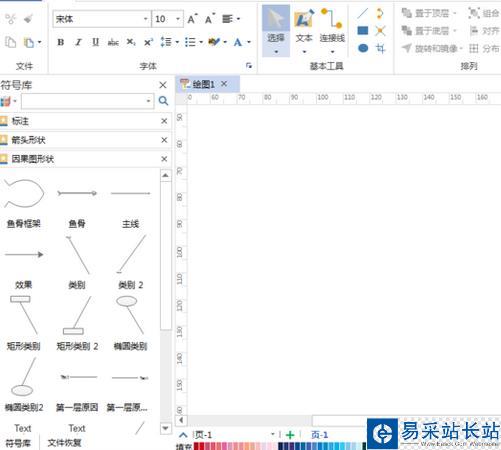 4、因果圖主架構(gòu)是一個魚骨架構(gòu),拖一個到畫布中,如下圖所示:
