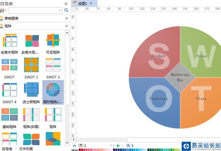 Edraw Max設計軟件的商務圖有類關系矩陣圖,可以從多個方面找到形成事務的因素或原因。下面利用一個具體的實例說明關系矩陣圖設計出合理的營銷圖,操作如下: