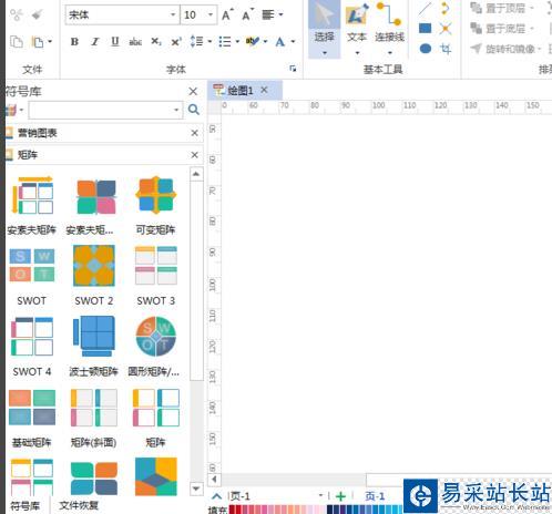 3、生成空白的畫布,有“營銷圖表”和“矩陣”,如下圖所示: