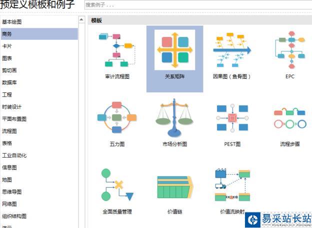 2、找到“商務圖”,點擊它查看對應子項“關系矩陣”,然后創建,如下圖所示: