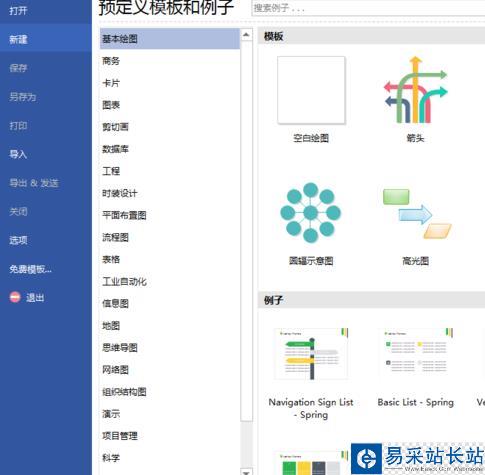 1、打開Edraw Max設計圖形軟件,操作“文件--->新建”,找到“預定義模板和例子”,如下圖所示: