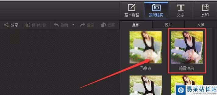 6、點(diǎn)擊數(shù)碼暗房選項(xiàng),在其內(nèi)找到晚霞渲染選項(xiàng),如圖所示: