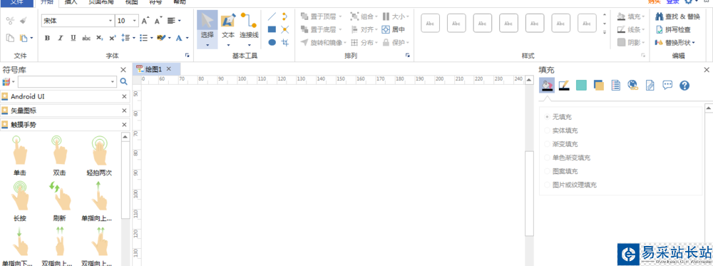 3、新建空白的畫(huà)布,左側(cè)有Android UI、矢量圖標(biāo)和觸摸手勢(shì),如下圖所示: