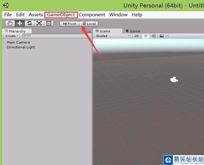 2、在該界面的菜單里找到gameobject菜單,如圖所示: