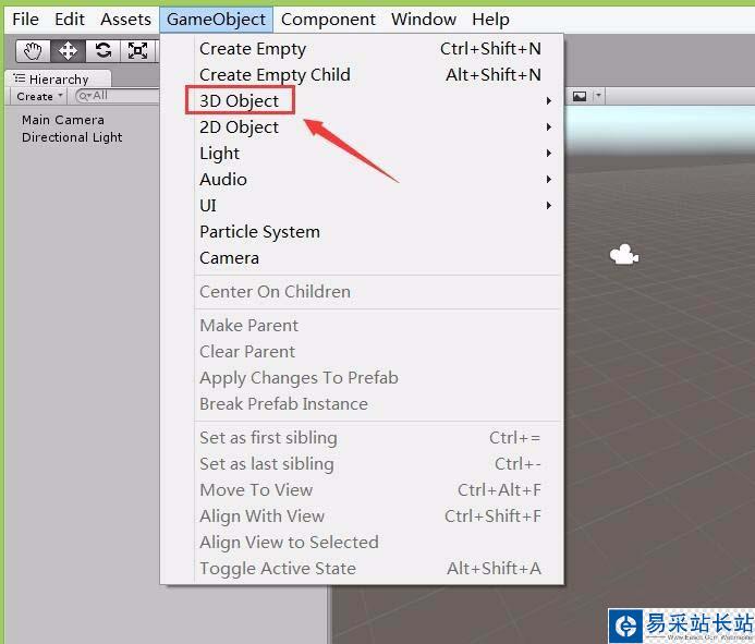 3、點擊gameobject菜單在其子級菜單哪里找到3d object選項,如圖所示: