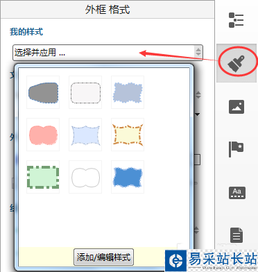 3)在“我的樣式”中,選擇合適的樣式,點(diǎn)擊即可將其應(yīng)用到所選對(duì)象上。