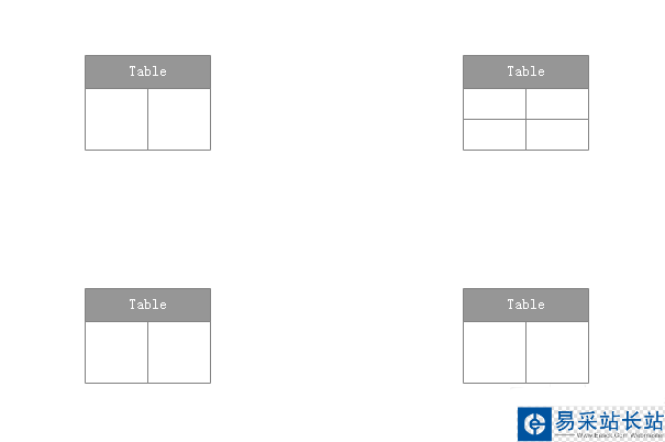 3、找到實(shí)體關(guān)系圖中的“實(shí)體 2”,拖曳四個(gè)到畫布上,如下圖所示: