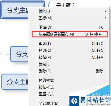 2)右擊“從主題創(chuàng)建新畫布”(快捷鍵Ctrl+Alt+T),即可創(chuàng)建以該目標(biāo)主題為中心主題的新畫布。