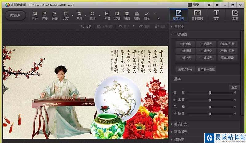 光影魔術手是一款免費的圖片編輯與處理軟件,該軟件操作簡單易行,非常容易上手,其內置的圖片特效能夠讓我們非常輕松的制作具有大師級的效果圖片,下面我們就來使用該軟件制作一張裝飾畫效果,其效果如圖所示: