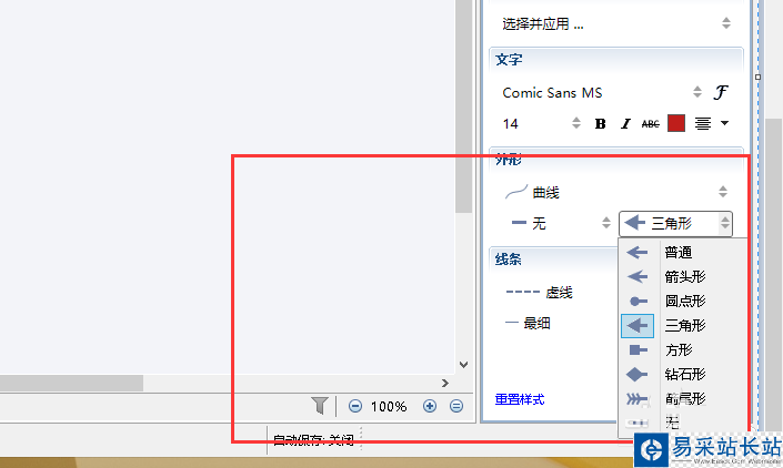 4、我們選定有箭頭的這個連接線,可以看到在右下角有一個可以設定箭頭格式的地方,跟Office平時的設定是一樣的,我們可以在這里進行詳細的設定