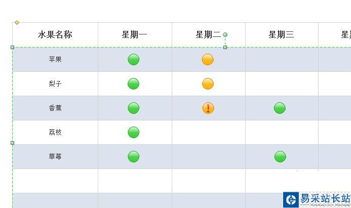 4、第四步,修改“狀態(tài)表”顯示的內(nèi)容,這里默認顯示星期和水果關系,如下圖所示: