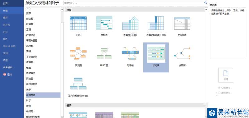 1、第一步,雙擊打開Edraw Max設計軟件,依此操作“新建--->項目管理--->狀態(tài)表”,如下圖所示: