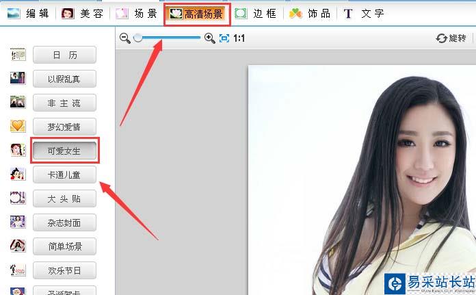 6、點擊可愛女生在右側找到我們需要的場景預設,如圖所示: