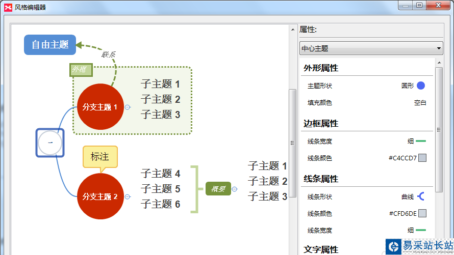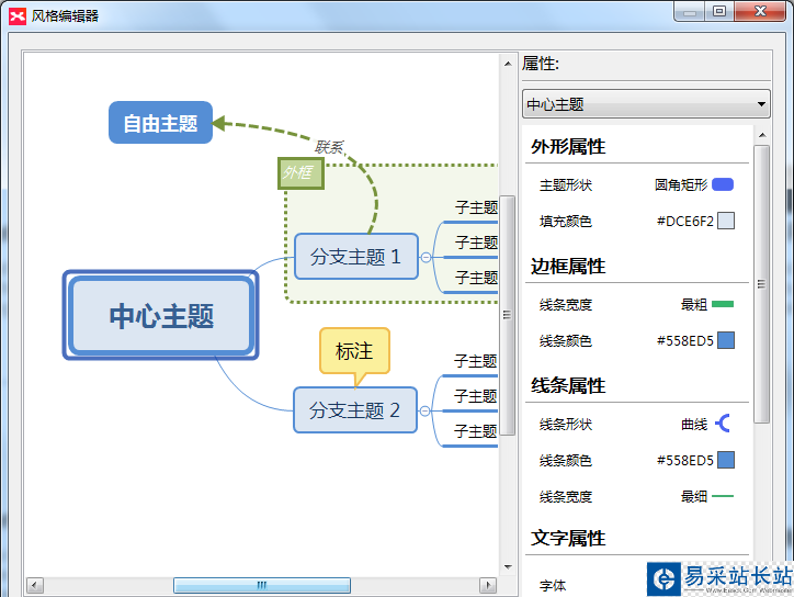 3)在彈出的“風格編輯器”中,會提取當前導圖的風格屬性。如果你還想進一步修改,可直接在此界面對相應的屬性進行適當的調整。最后單擊保存即可。