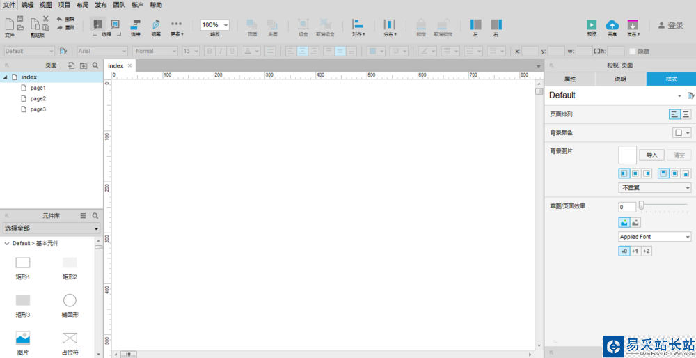 1、雙擊打開Axure RP 8設計軟件,展示頁面顯示的內容,如下圖所示: