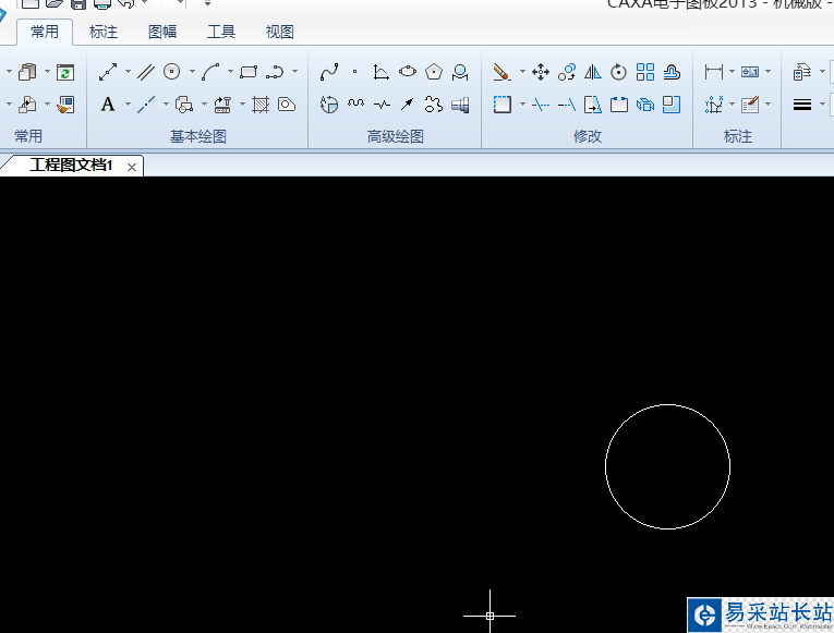 1、首先找到CAXA軟件,雙擊運行,此處先隨意畫個圓,畫條直線用此來舉例。