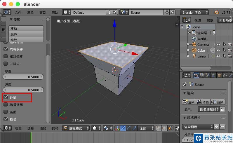 7、勾選“外插”,就會向外插入面,還有許多其它設置我們可以自己嘗試。
