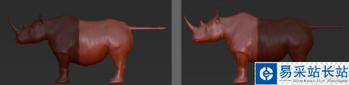 若想要模型變得光滑,可以在模型上按住Ctrl鍵進行單擊以實現不同程度的柔滑遮罩(單擊的次數越多,柔滑效果越明顯)。