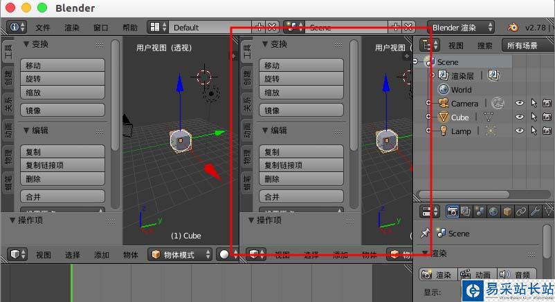 blender窗口界面的配置是很靈活的,我們可以任意刪除或者添加自己需要的功能窗口,如下圖所示,或者直接修改任意窗口的功能屬性。