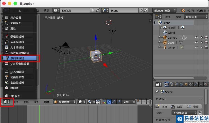 2、但是我們可以通過每個功能布局上的面板左側修改功能,比如我們把默認的“3d視圖”窗口設置為“序列編輯器”。