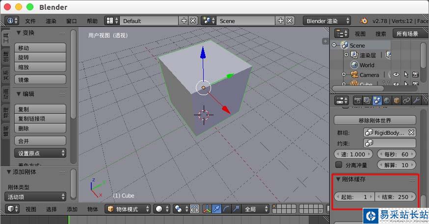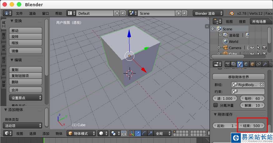blender默認動畫只模擬250幀,像路徑動畫、物理剛體動畫都只有250幀,其實我們可以自己設置幀的數量,可以設置大于或者小于這250幀數。