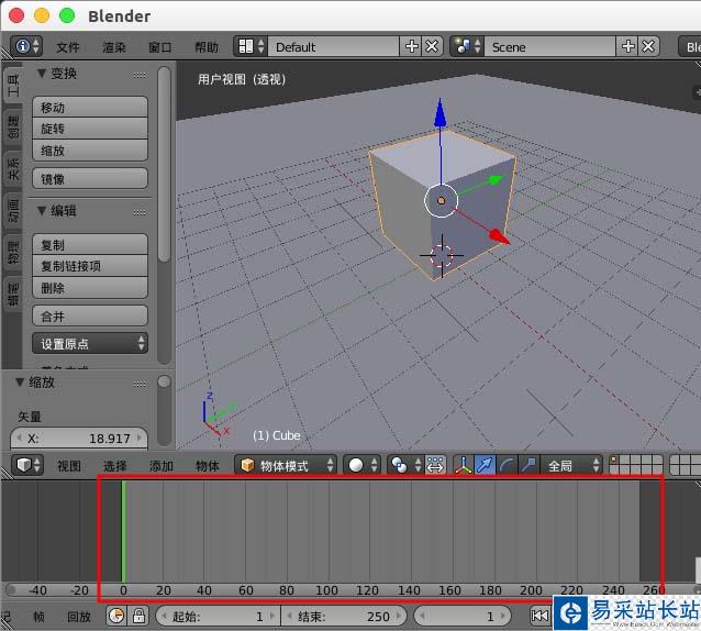 1、打開blender,默認的物體動畫模擬只有250幀。