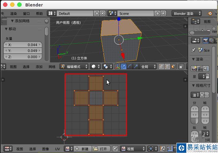 5、全選展開的UV布局,對其進行“S”縮放,“G”移動,放到網格大小合適。