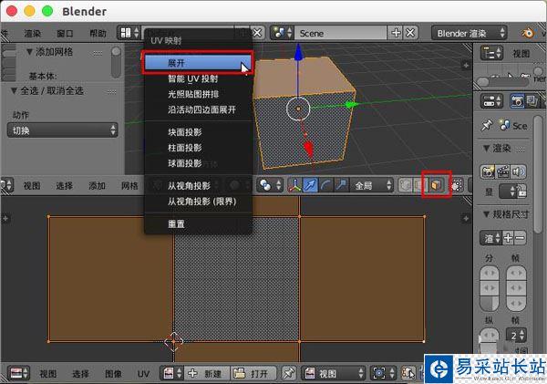4、選擇模型的所有面,并“U”鍵使用合理的展開方式展開模型。