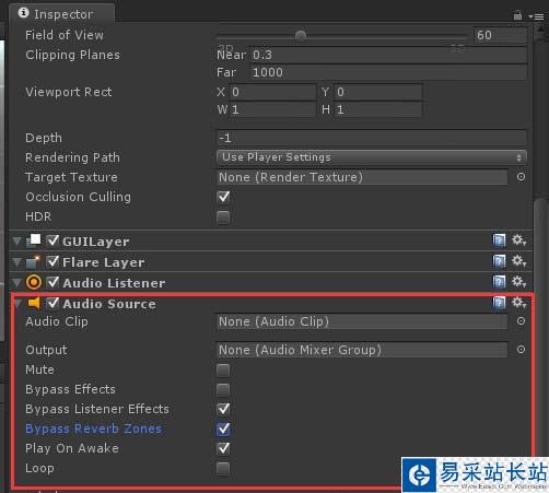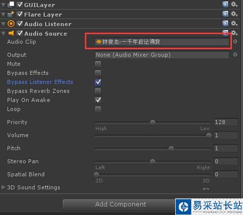 在設計一個Unity3D游戲的時候,我們往往需要在游戲中設置一個背景音樂或者特色音效,下面就來講解如何在Unity5.0中給游戲添加音效。這里為了簡單操作直接在照相機上添加音頻組件。