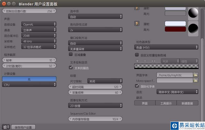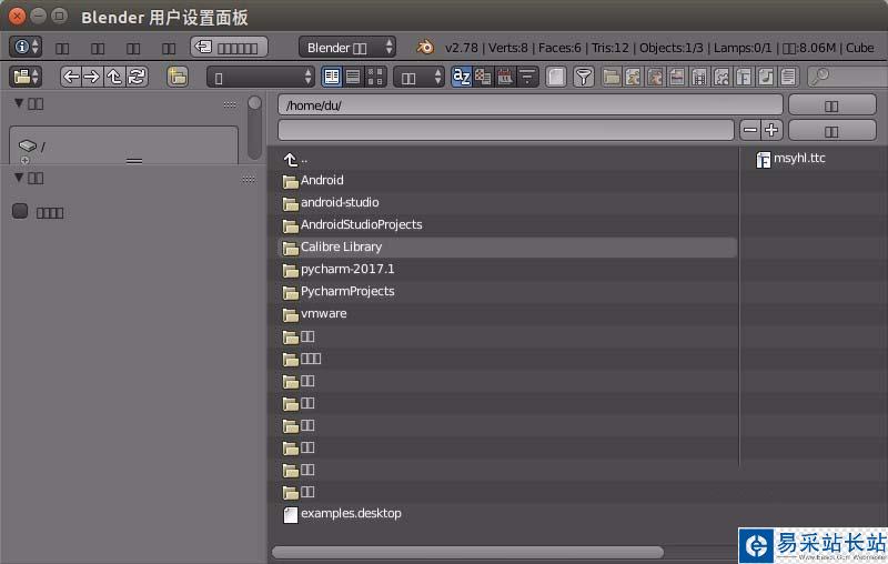 LInux下的Blender,默認是英文環境,可以設置成中文,但是設置成中文之后,就成了框框,這里需要自己導入字體,具體什么原因軟件沒有自帶中文字體就不管他了