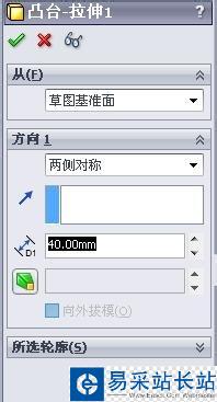 2、凸臺拉伸,兩側對稱拉伸40