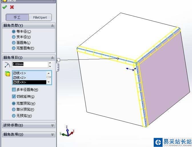 solidworks怎么設置圓角及倒角虛擬交點?