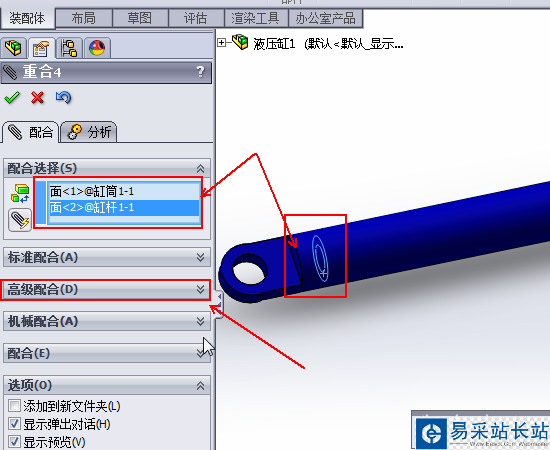 7、設(shè)置完成后確定,保存為裝配體。在需要安裝油缸的裝配體中插入油缸的裝配體。