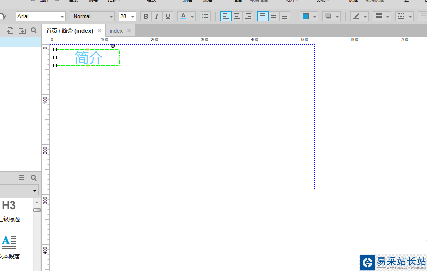 5、打開面板狀態(tài)管理,雙擊“簡(jiǎn)介”面板狀態(tài),移動(dòng)一個(gè)文字標(biāo)簽到界面上,修改內(nèi)容,如下圖所示:
