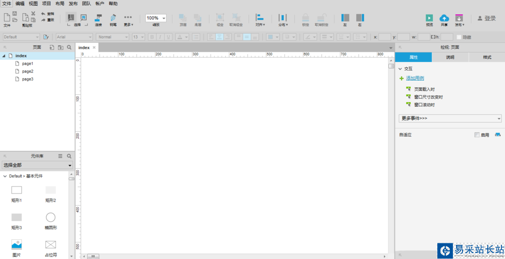 1、雙擊打開Axure RP 8軟件,查看動(dòng)態(tài)面板的位置,如下圖所示: