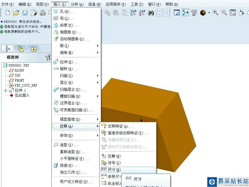 我們會用在proe5.0里面使用2d標注尺寸,那么怎么在3d里標注尺寸了。這個功能可以用proe的注釋功能實現。