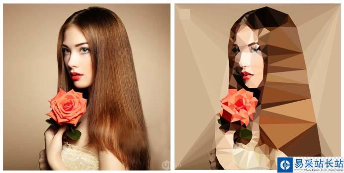 類似上面這種復雜的圖形都是可以實現的。好啦,不多說了,開始講步驟吧!我們要做的是把下面的左圖變成右圖的效果: