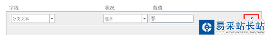 5、最后就是“字段”了,字段有狀況和數值。點擊字段下方框中右上角的空心小圓,我們就可以選擇篩選的具體內容,如下圖所示: