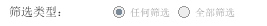 4、接下來是“篩選類型”,它有兩個單選項分別是任何篩選和全部篩選。但是小編發現了個問題它的全部篩選好像是個擺設,所以我們這里選擇“任何篩選”,如下圖所示: