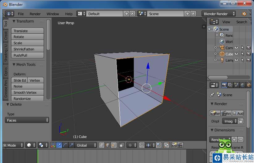 1、打開(kāi)blender創(chuàng)建一個(gè)立方體。